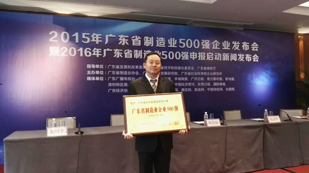 科技集團有限公司入選廣東省制造業500強,讓我們再接再厲,再